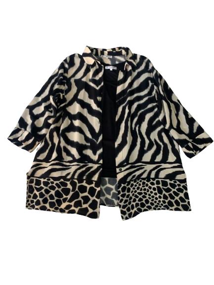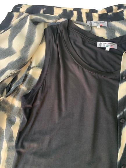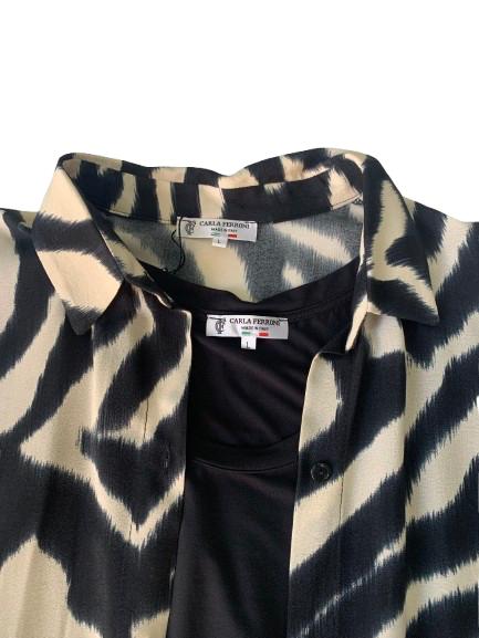 Twin-set donna Carla Ferroni con canotta tinta unita e camicione lungo animalier con collo manica 3/4 linea comoda tessuto crepe