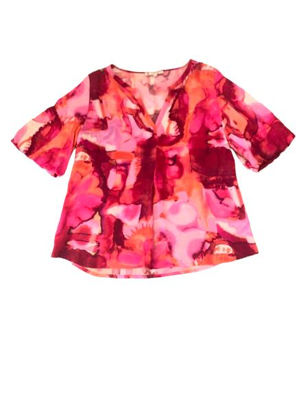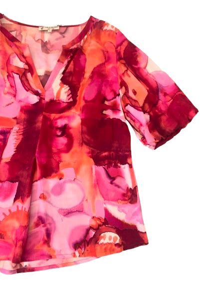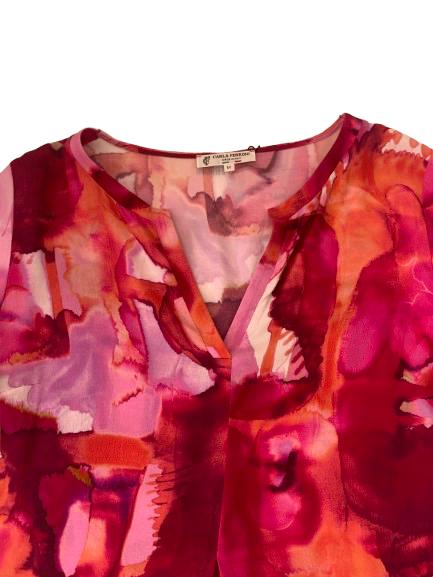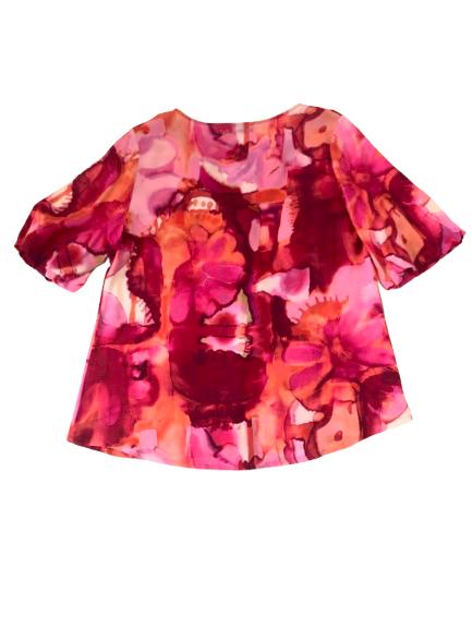 Blusa donna Carla Ferroni mezza manica a pallonciono scollo a V piegone sull’addome che la fa scendere leggermente ampia