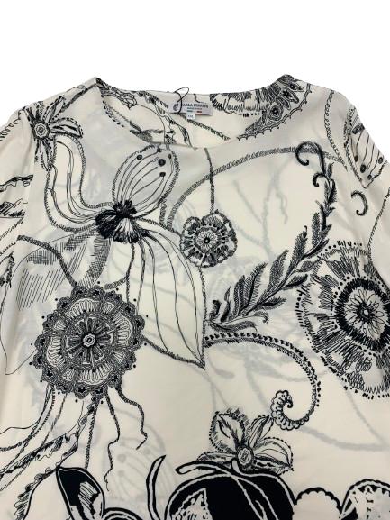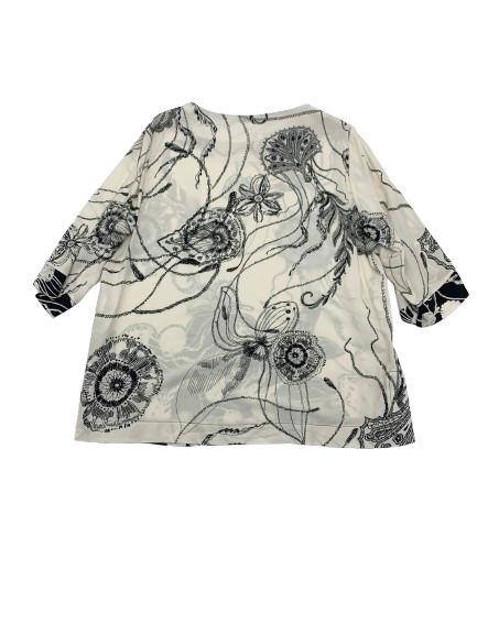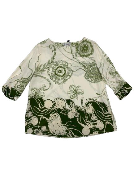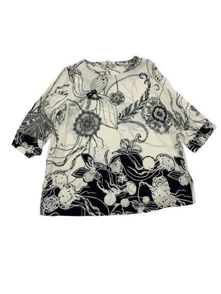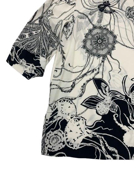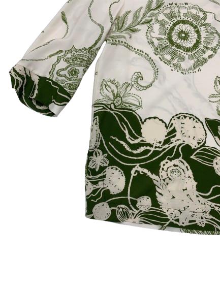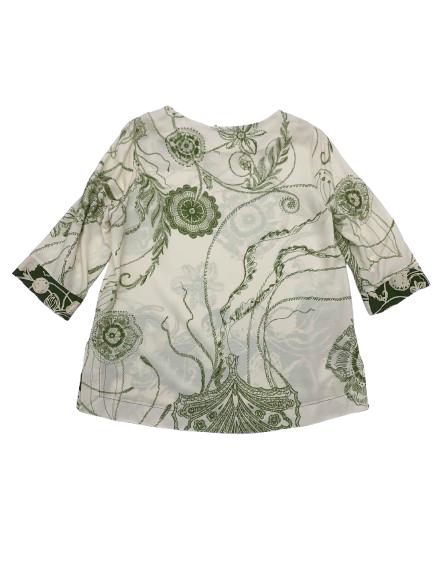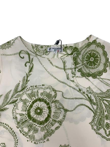 Blusa donna girocollo in viscosa fantasia su fondo avorio spacchetti laterali
