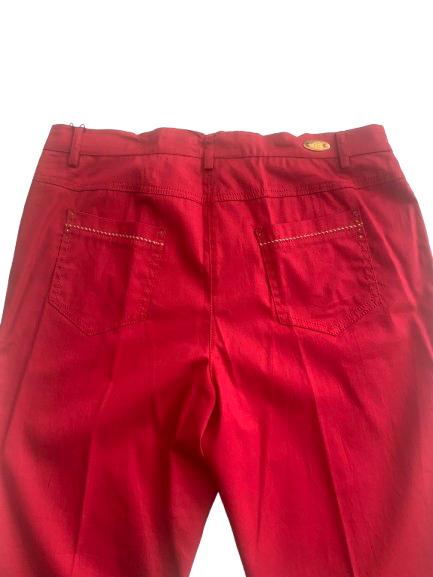 Pantalone donna Carla Ferroni in cotone stretch modello 5 tasche con strass e cordoncino linea Capri chiusura cerniera e bottone con passanti sul bustino