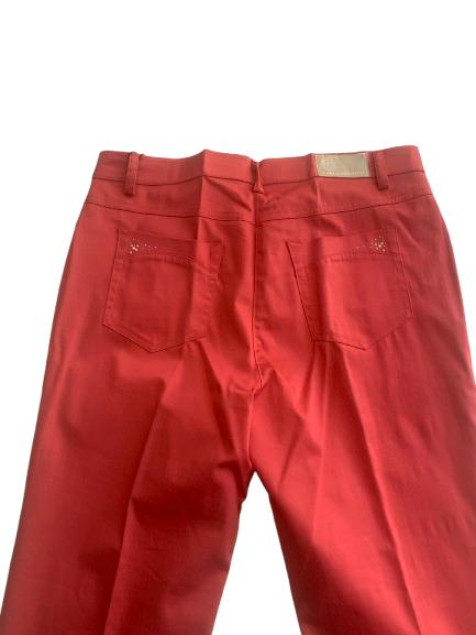 Pantalone donna Carla Ferroni in cotone stretch modello 5 tasche con strass sulle tasche linea Capri chiusura con cerniera e bottone e passanti sul bustino