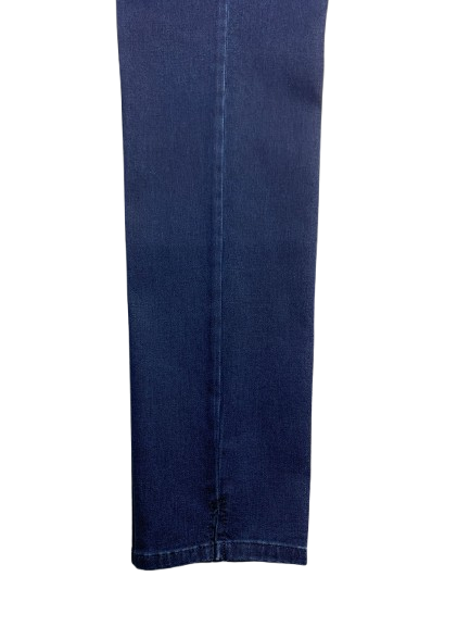 Pantalone donna Carla Ferroni in tela di jeans modello a sigaretta con spacco laterale sul fondo linea comoda tessuto stretch con elastico in vita tasche posteriori e finte tasche anteriori completa il capo un applicazione metallica sulla tasca posteriore