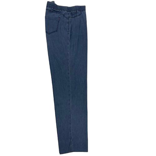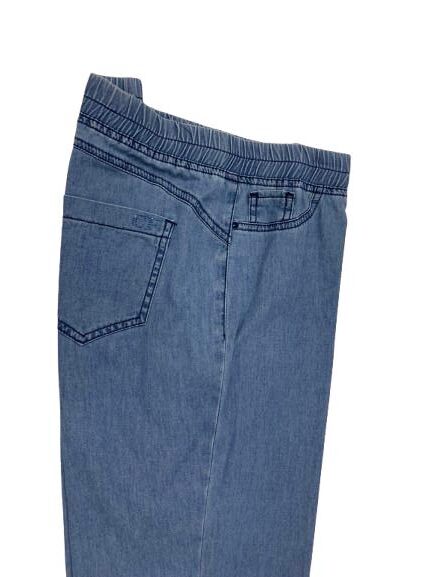 Pantalone donna in jeans ultra leggero con elastico in vita e tasche posteriori linea dritta