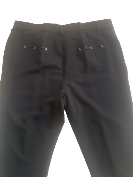 Pantalone donna Carla Ferroni in tessuto di poliviscosa con tasche anteriori e tasche posteriori finte a filetto con bottone e cerniera e passanti sul bustino line Capri