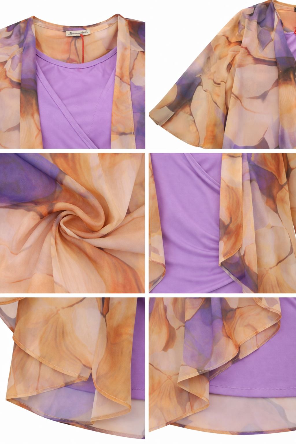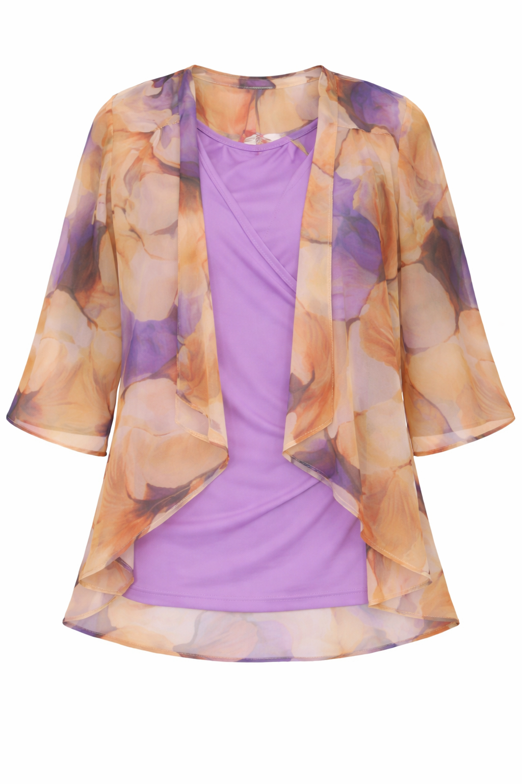 Bolero donna con manica 3/4 a campana in georgette stampa floreale piu corto avanti con balza