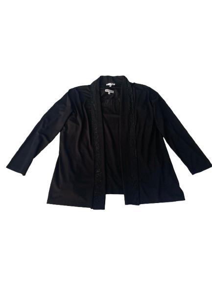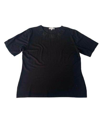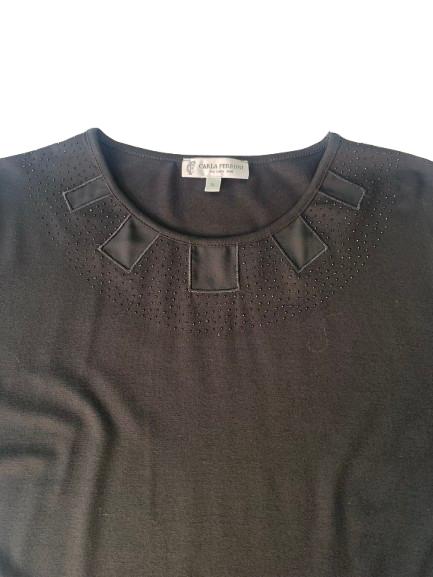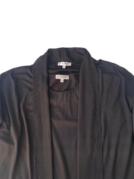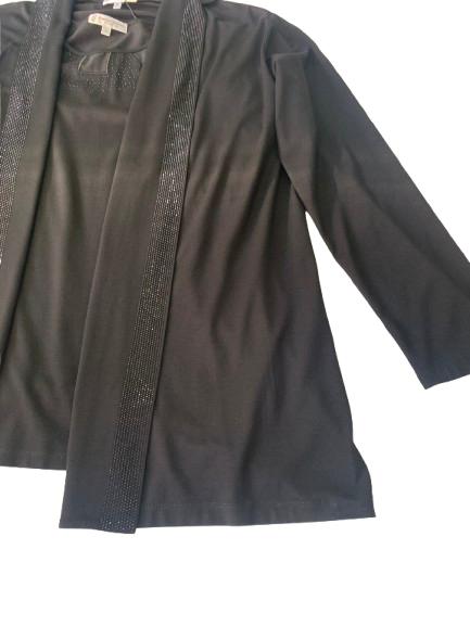Twin-set donna Carla Ferroni in viscosa con mezza manica con trasparenze e strass sul collo a giro e giacca con collo sciallato con strass lungo il collo manica lunga linea comoda