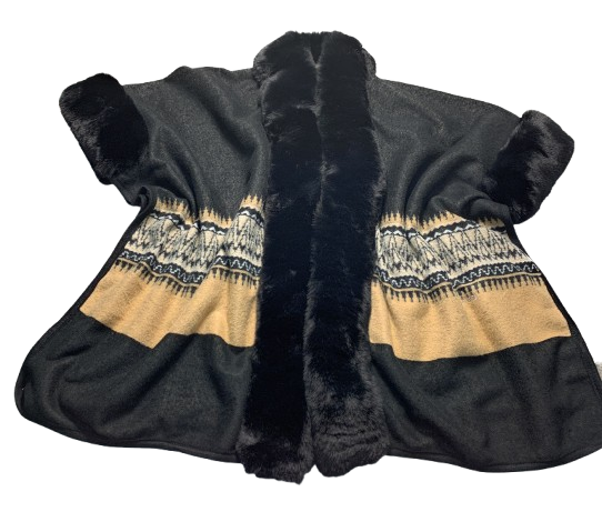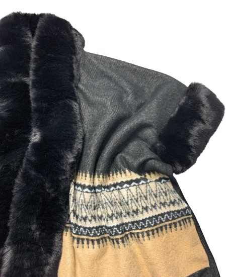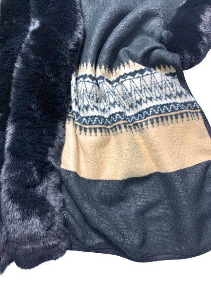 Mantella donna Carla Ferroni con profilo in eco pelliccia e fantasia geometrica sa contrasto tessuto in maglia