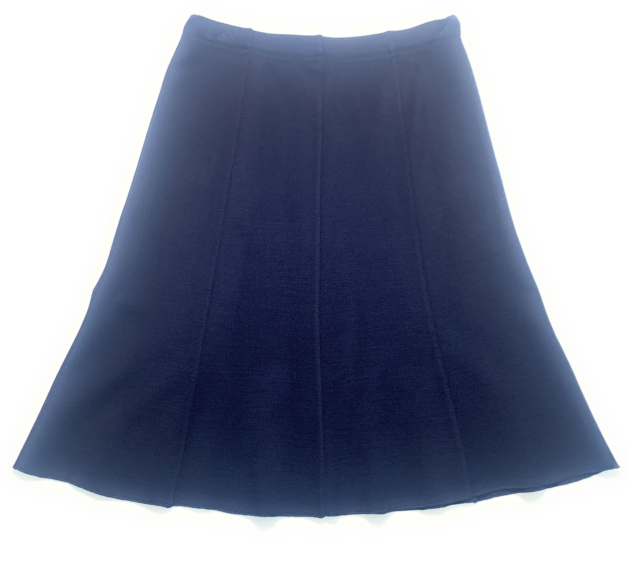 Gonna svasata longuette in maglina di lana merinos al 50% con elastico in vita modello a 8 teline in morbido filato di maglia lunghezza nella taglia 44 di 64 cm