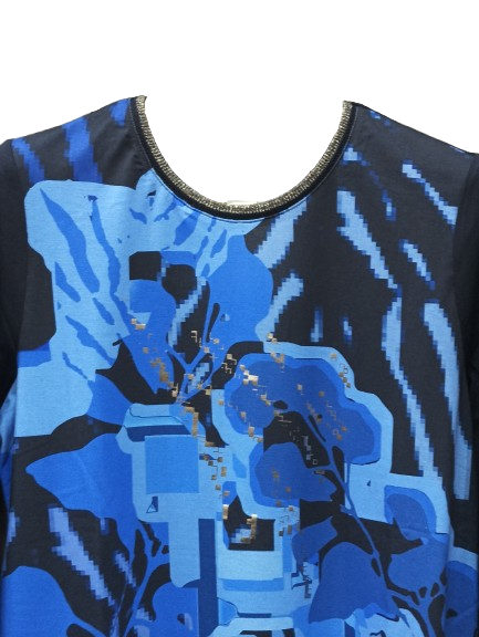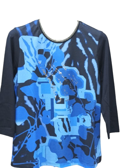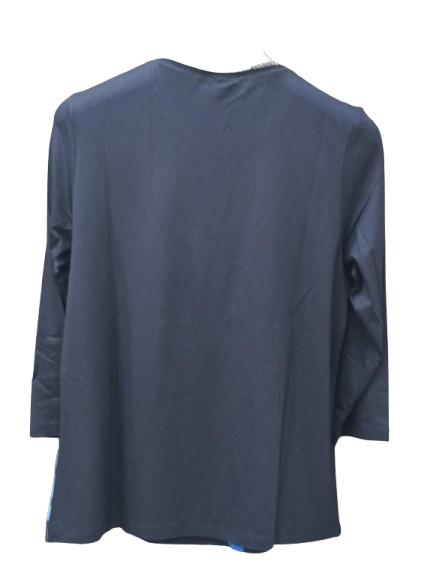T-shirt donna in viscosa fantasia con retro tinta unita manica 3/4 con bordo collo in lurex