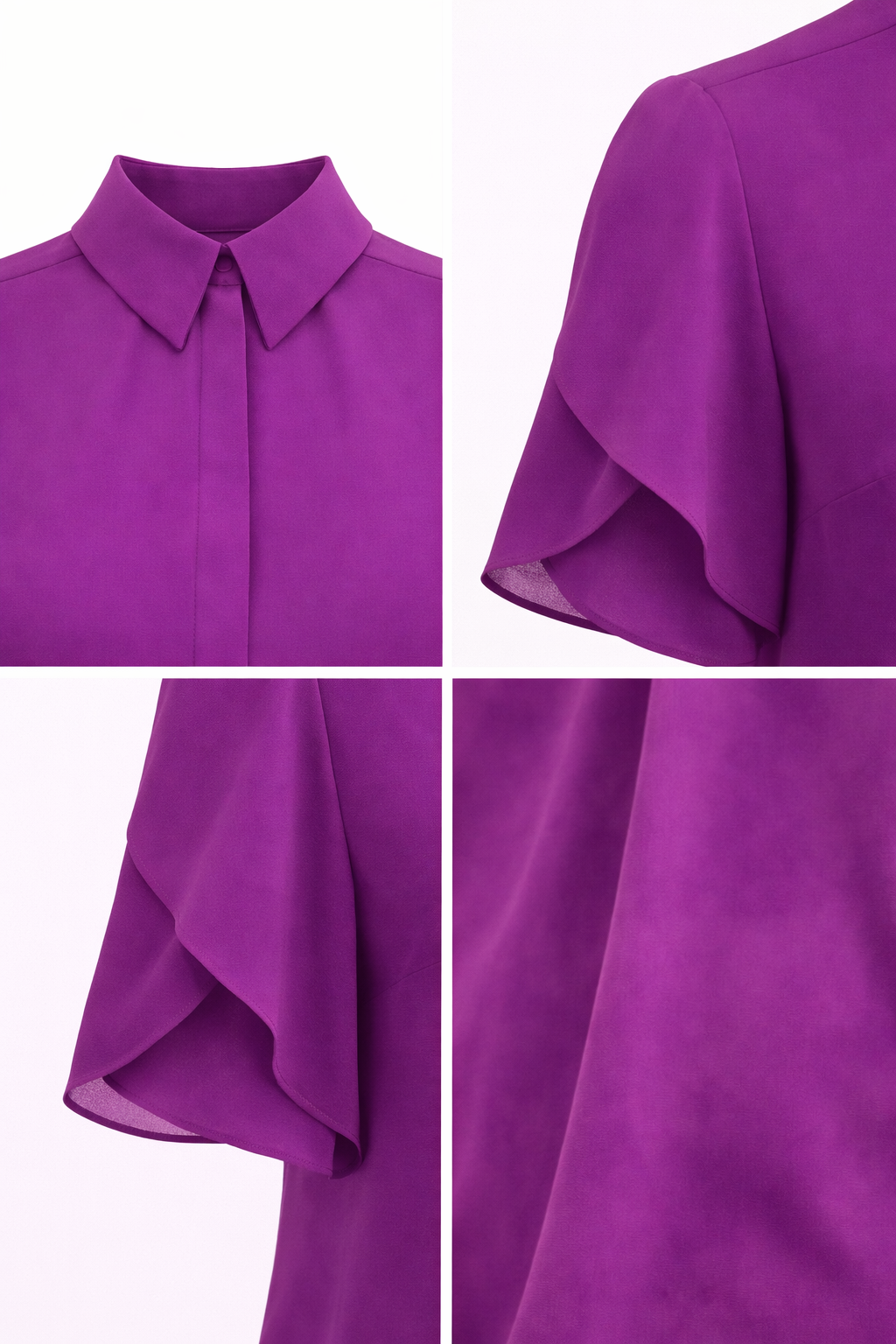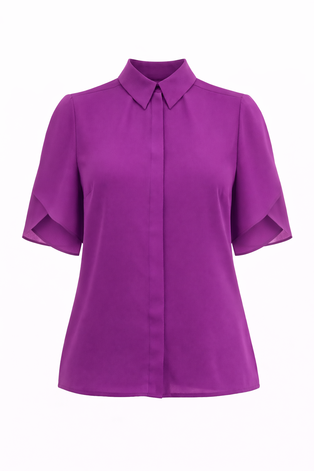 Camicia donna in doppia georgette collo italiano con manica a incrocio e asole coperte