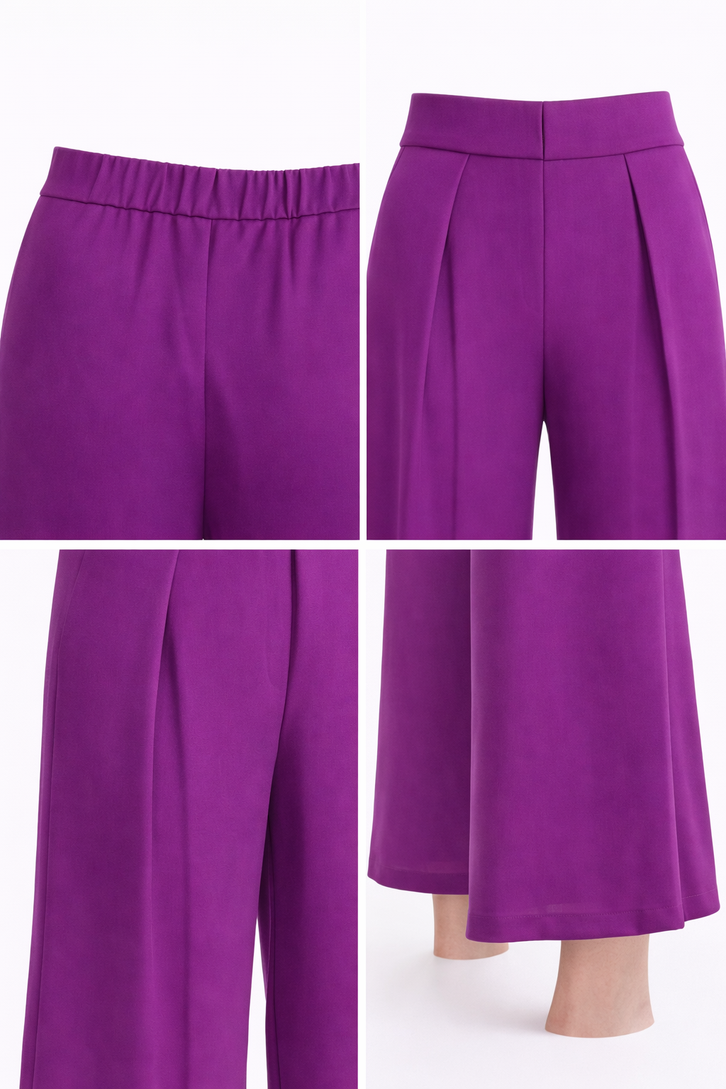 Pantaloni donna a palazzo co piega spacco laterale in doppia georgette bustino in vita con zip laterale e elastico centrale posteriore
