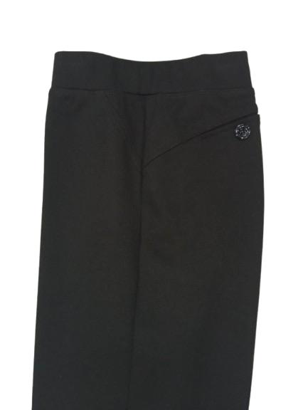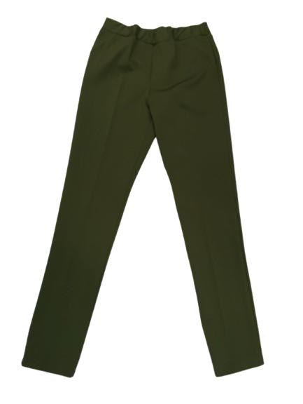 Pantalone donna a sigaretta in Punto Milano di viscosa tessuto stretch con elastico in vita totale e finte tasche posteriori con bottone