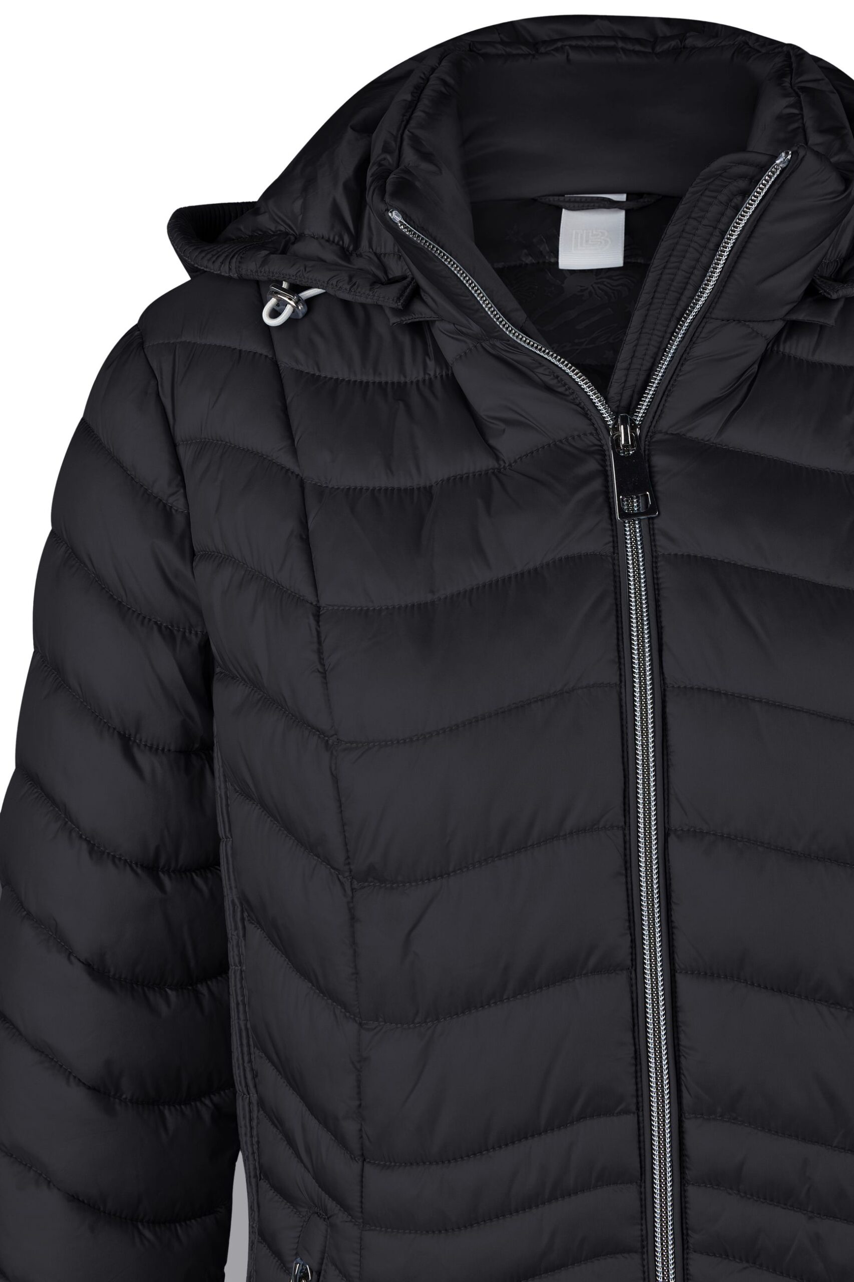 Piumino donna Barbara Lebek modello 100grammi linea trapuntata con fascia elastica laterale con cappuccio staccabile collo a pistagna chiusura con zip imbottitura eco piuma
