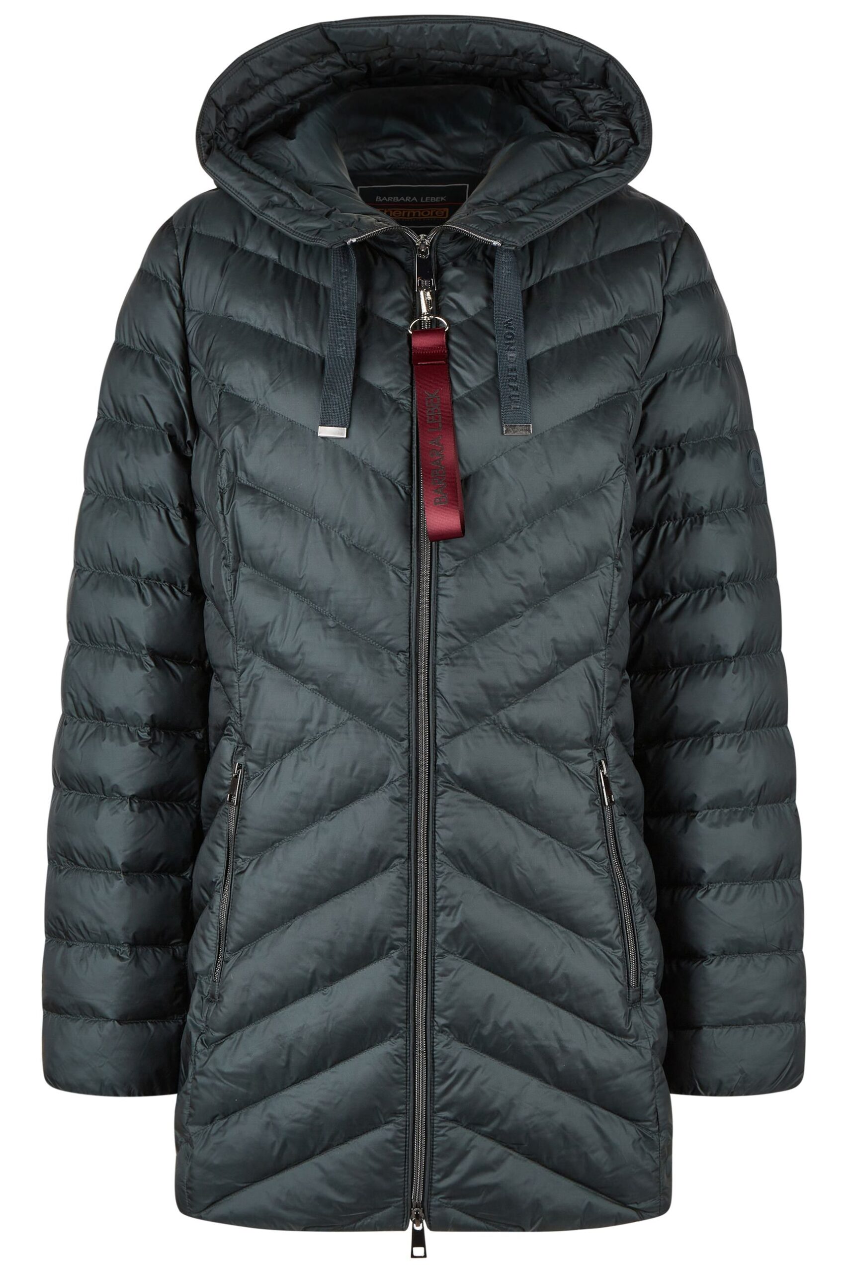 Piumino donna Barbara Lebek tessuto trapuntato con cappuccio integrato chiusura con zip doppio cursore linea leggermente svasata con zip ai lati lunghezza media
