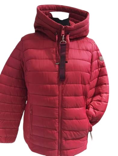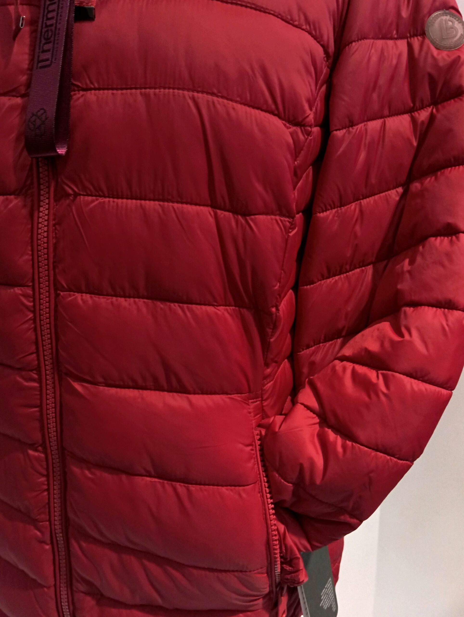 Piumino donna in tessuto Thermore con cappuccio integrato con visiera chiusura doppio cursore tasche con zip parte posteriore leggermente asimmetrica e zip laterali per un comfort maggiore