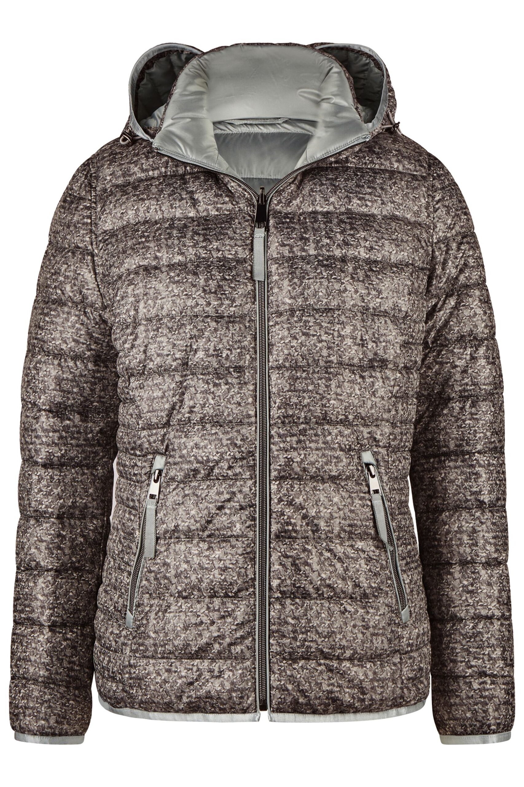 PIUMINO DONNA BARBARA LEBEKL REVERSIBILE CON CAPPUCCIO STACCABILE INTERNO TINTA UNITA ESTERNO FANTASIA SUI TONI DEL GRIGIO