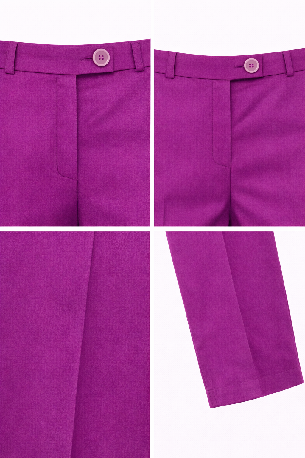 Pantalone donna a sigaretta tessuto lucido effetto taffetà con bustino in vita e bottone giuoiello e tasca laterale