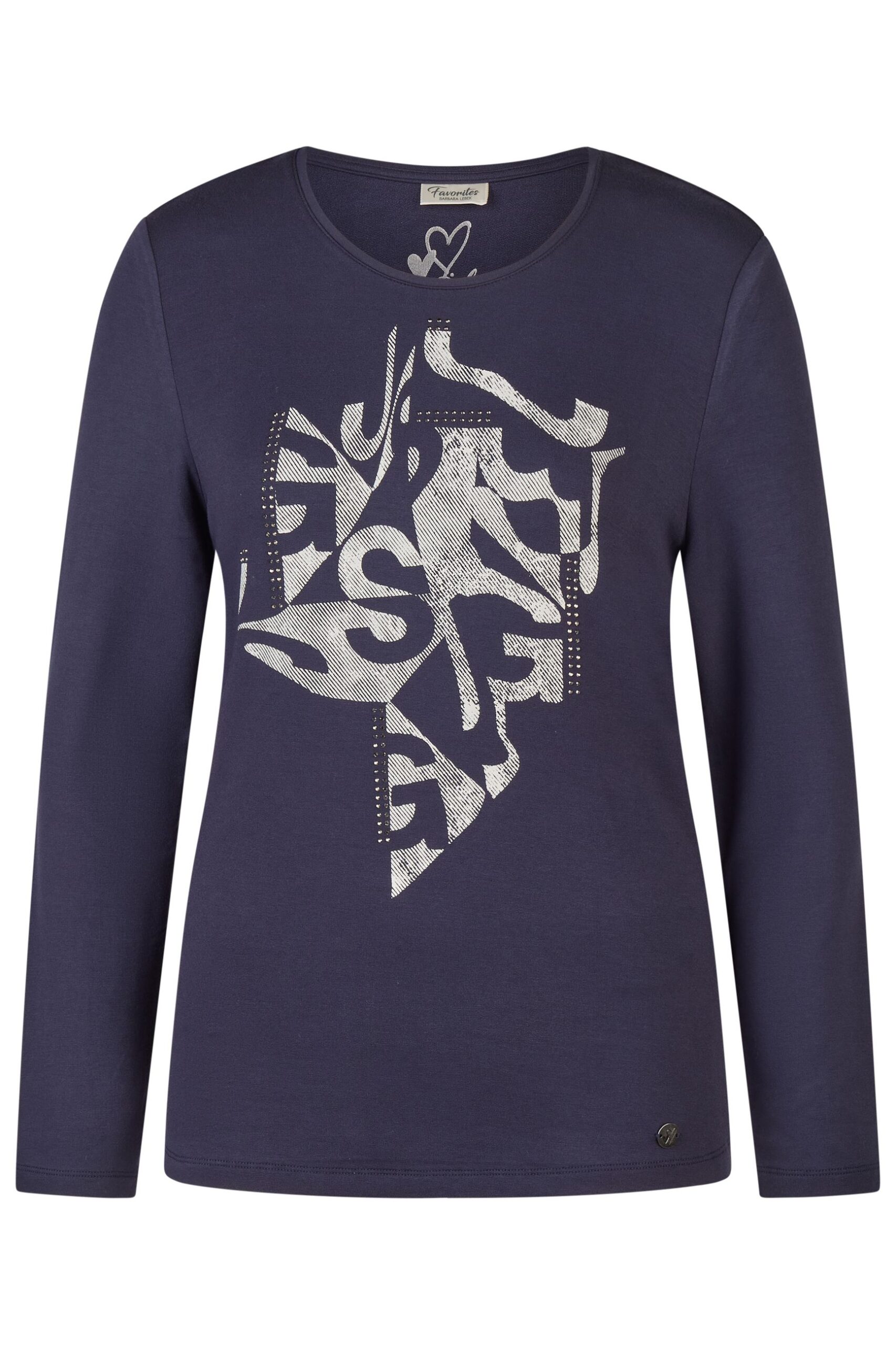 T-shirt donna girocollo Barbara Lebek in viscosa manica lunga con stampa anteriore a contrasto su fondo unito applicazione di strass