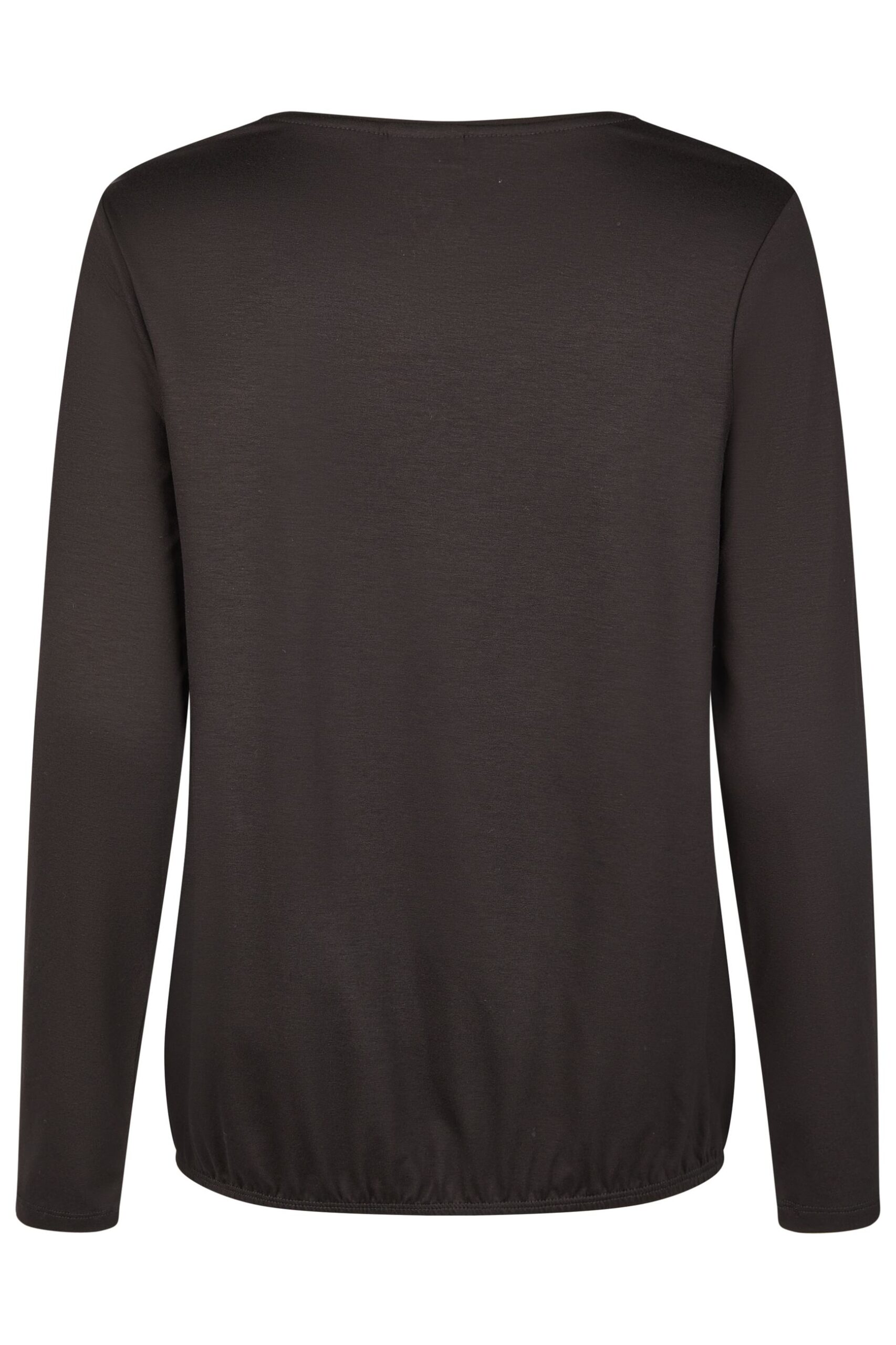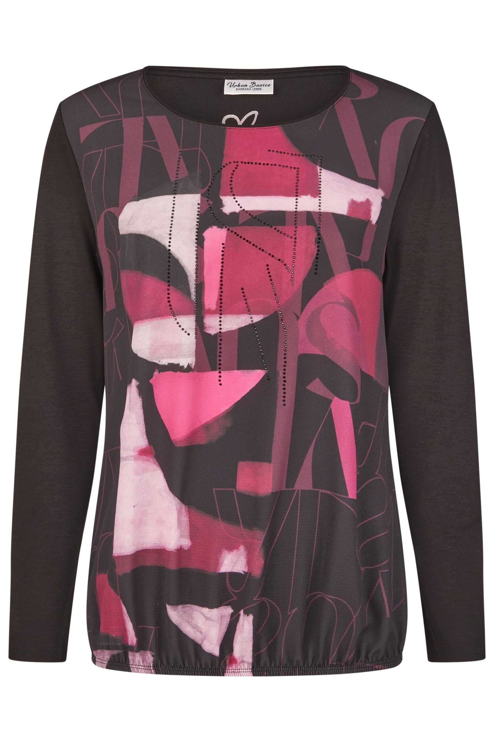 T-shirt donna Barbara Lebek girocollo manica lunga con elastico sul fondo e pannello anteriore fantasia sui toni del vinaccia con applicazione di strass retro tinta unita
