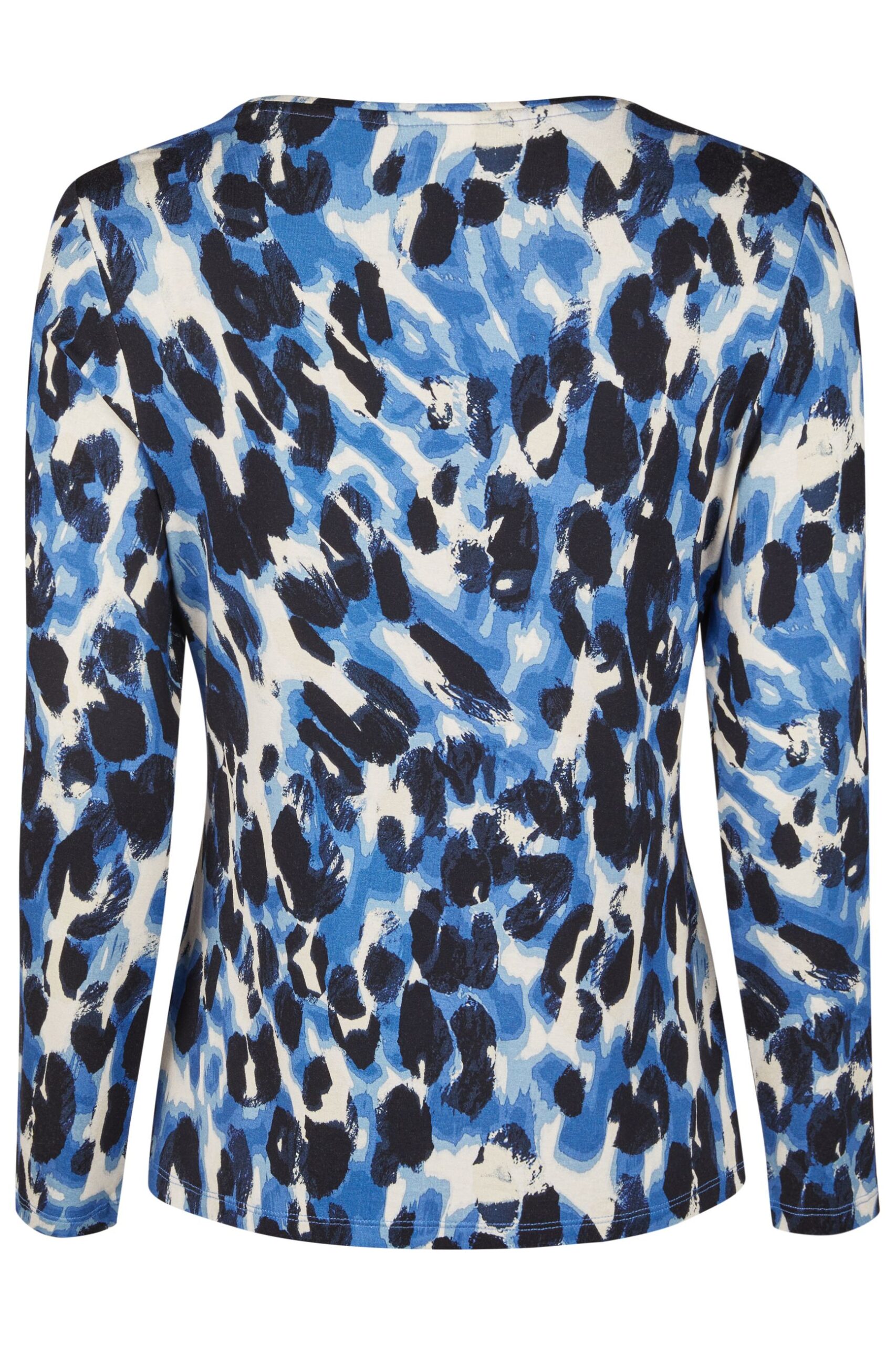 T-shirt donna Barbara Lebek in viscosa manica lunga girocollo fantasia animalier sui toni dell’azzurro