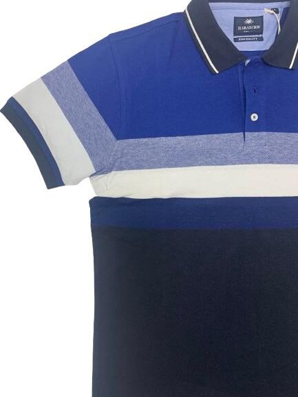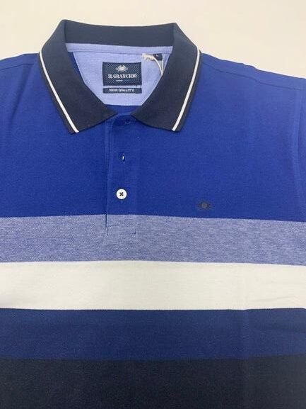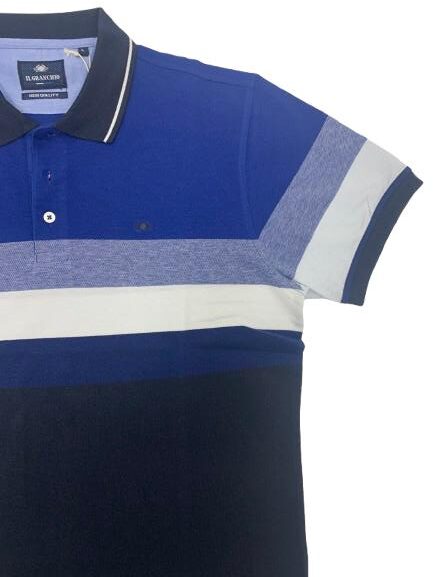 Polo uomo Il Granchio in cotone piquet mezza manica fantasia a fasce degradè con collo a contrasto e logo sul petto