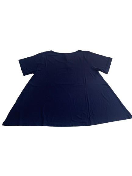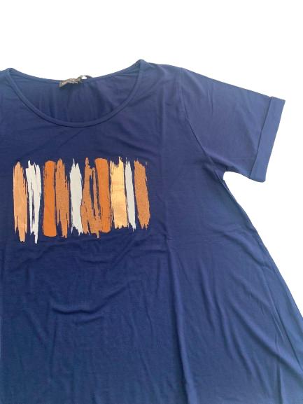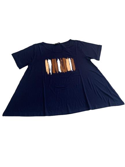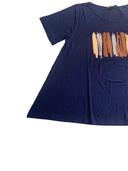 T-shirt donna Mara Carol in viscosa mezza manica con risvolto e stampa lucida anteriore linea svasata sul fondo collo a barca