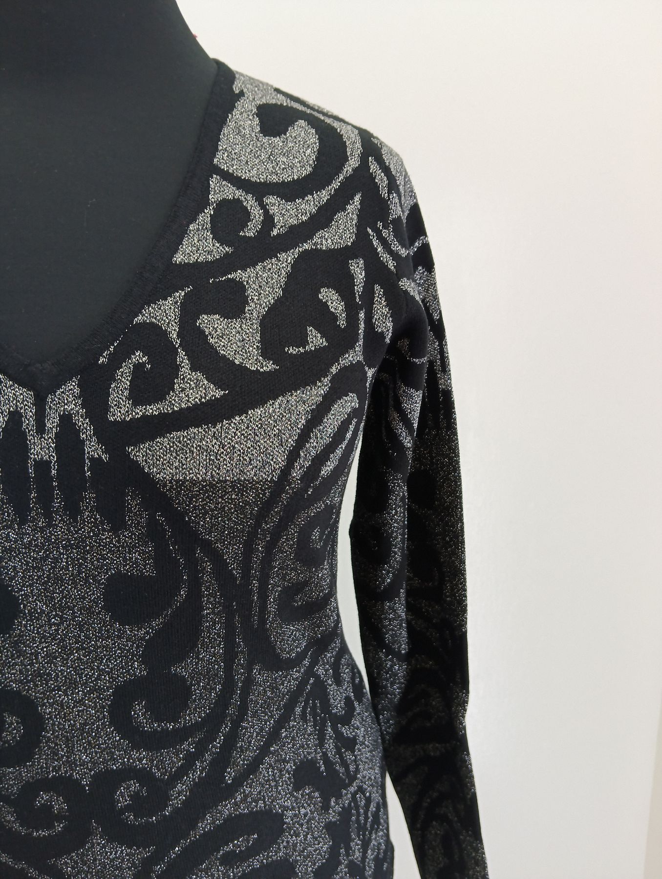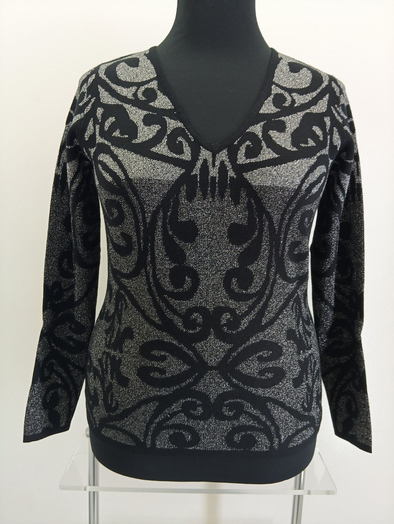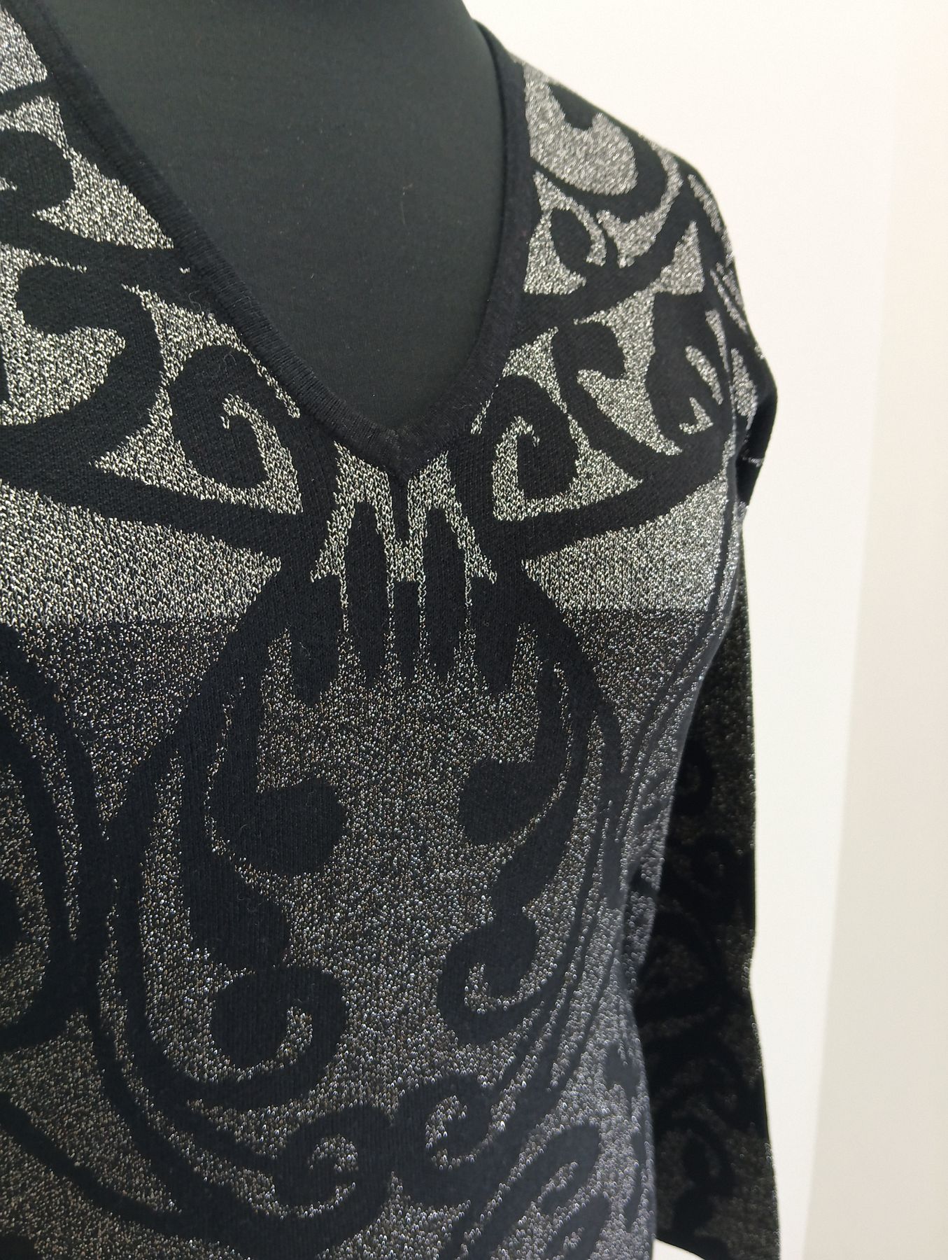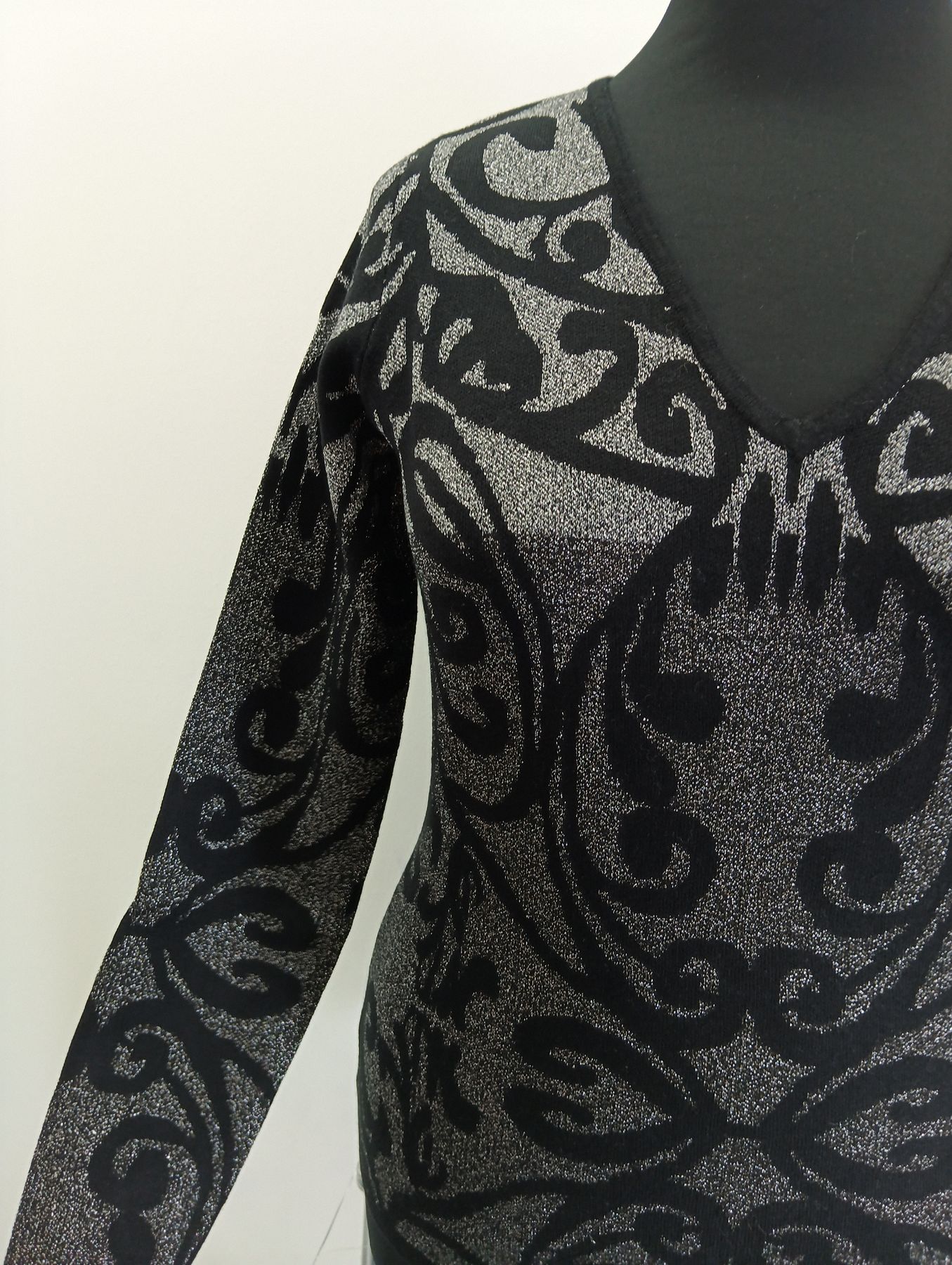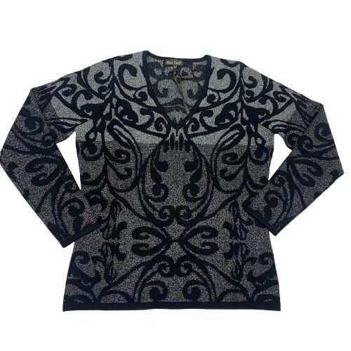 Maglia donna scollo a V in lurex di viscosa stampa a gradazioni di grigio