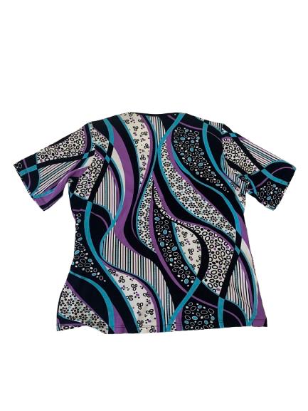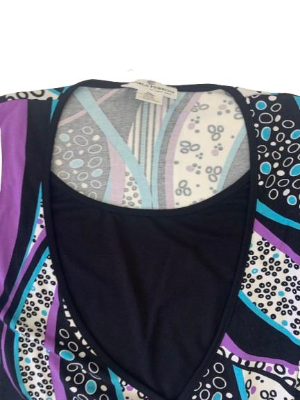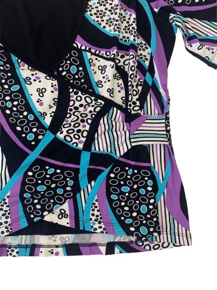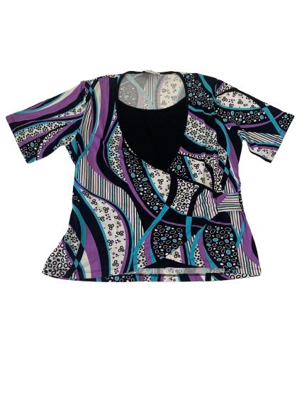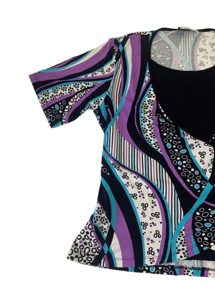 Finto Twin-set donna Carla Ferroni in viscosa mezza manica con stampa geometrica multicolore aggrappatura sul fianco