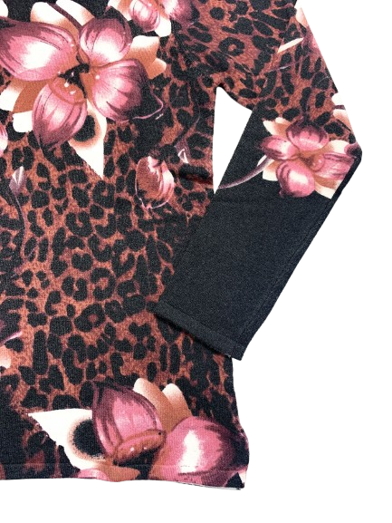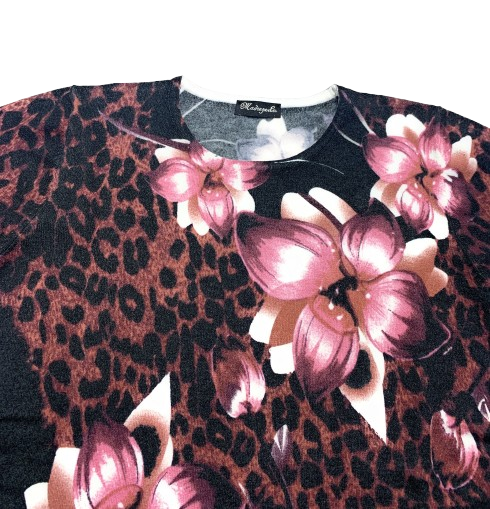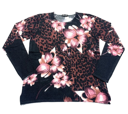 Maglia donna in maglina di viscosa fantasia floreale scollo rotondo linea confort