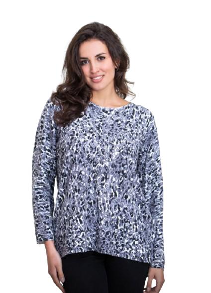Maglia donna in maglina di viscosa fantasia animalier scollo rotondo linea Over