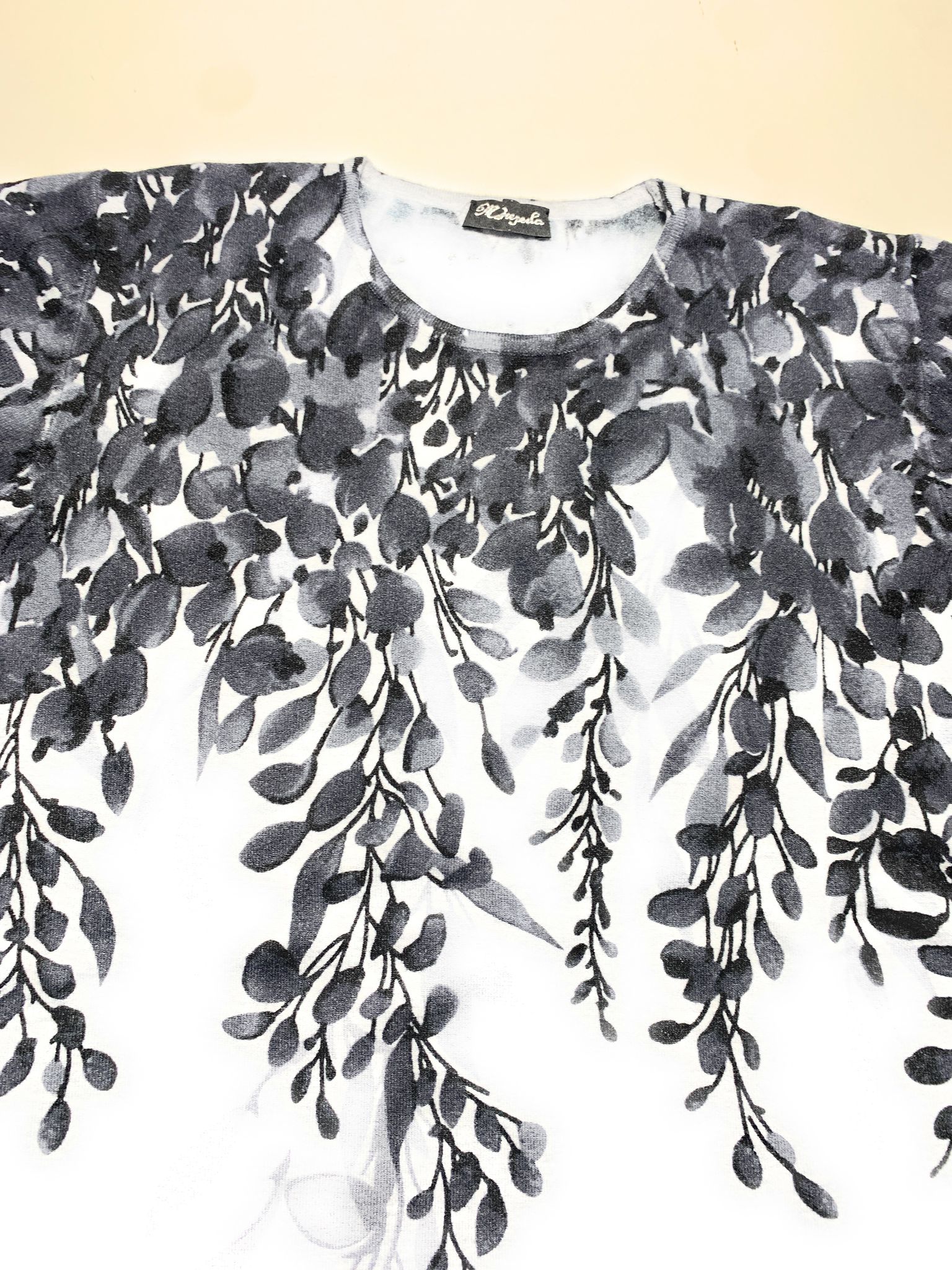 Maglia donna in maglina di viscosa fantasia floreale linea Over con scollo rotondo