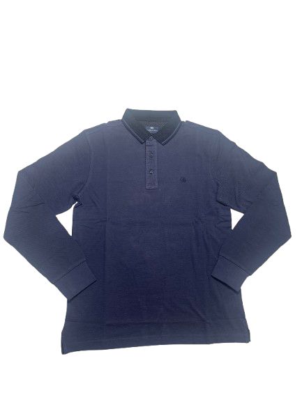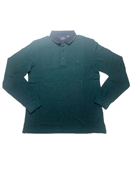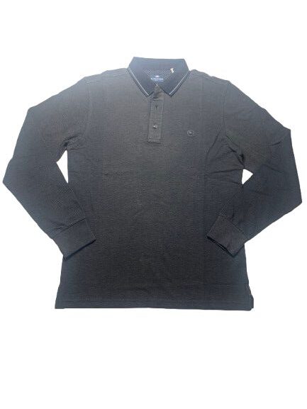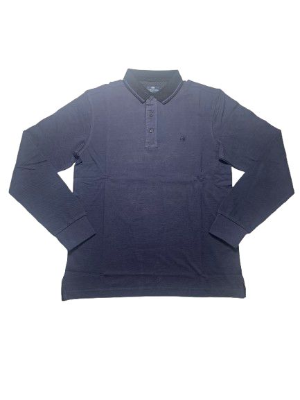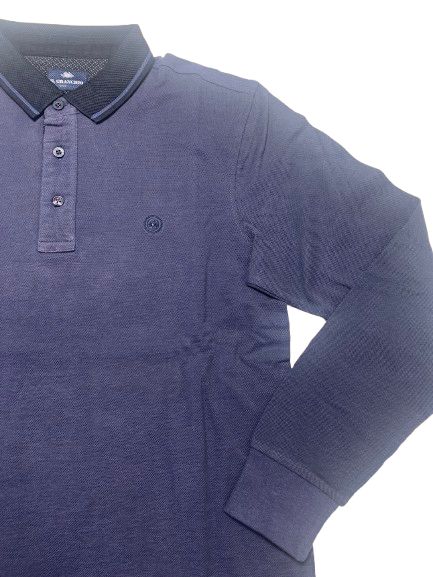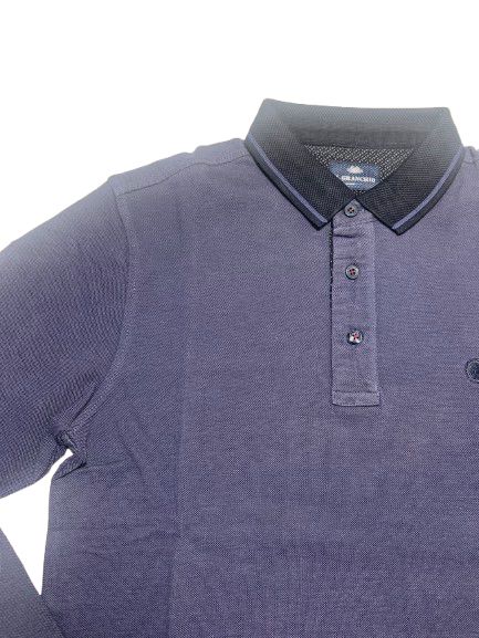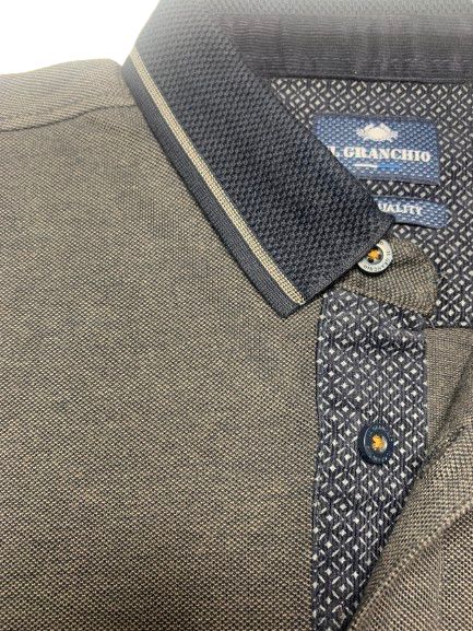 Polo uomo Il Granchio in cotone piquet oxford manica lunga collo unito tessuto sale e pepe con interno collo micro-fantasia
