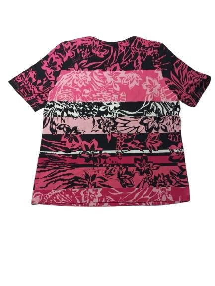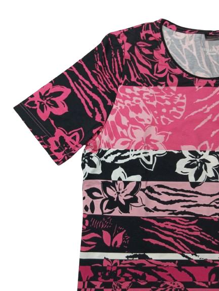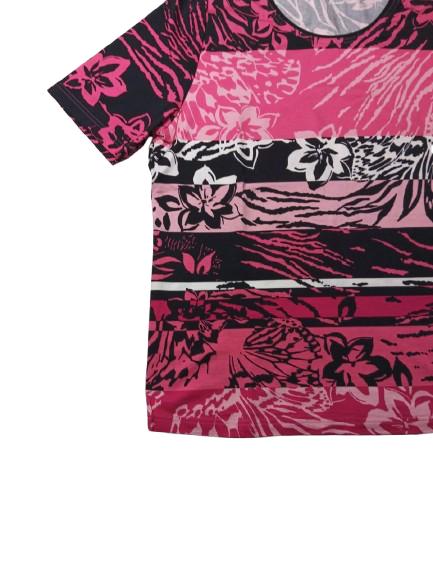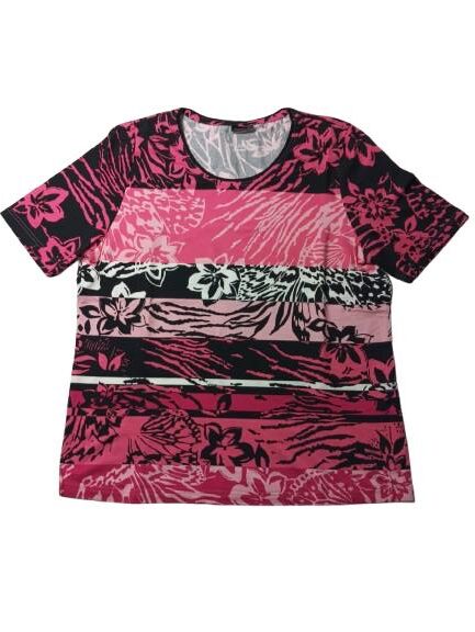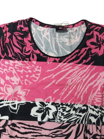 T-shirt donna Barbara Lebek in viscosa mezza manica girocollo con stampa a fasce floreali gradazioni di rosa
