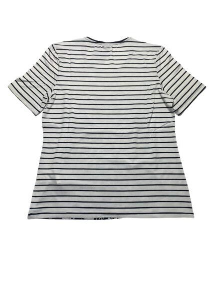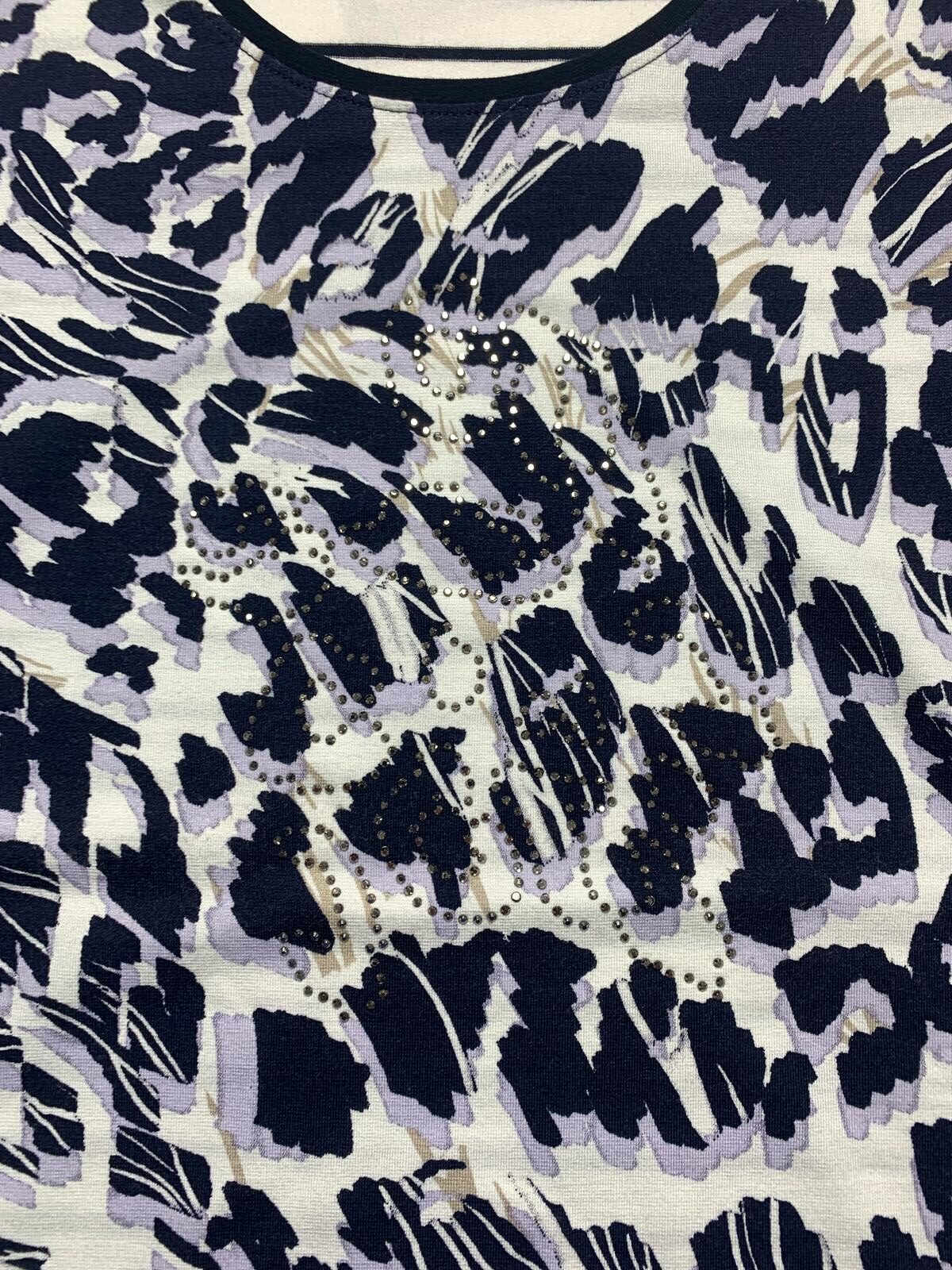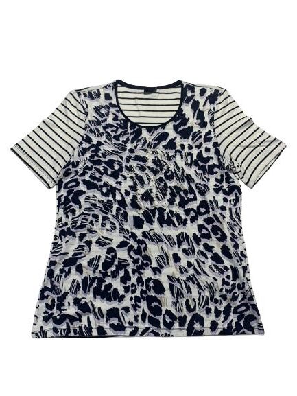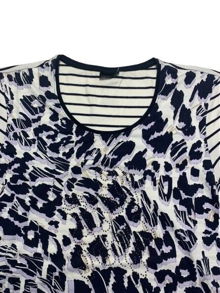 T-shirt donna Barbara Lebek in viscosa mezza manica girocollo con fantasia a righe sul retro e sulle maniche e fantasia animalier anteriore con strass