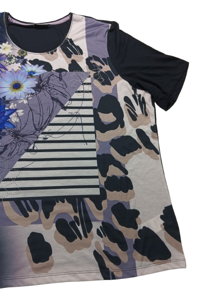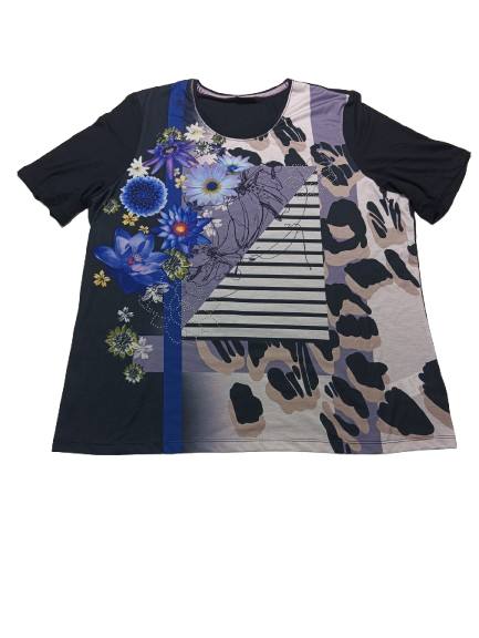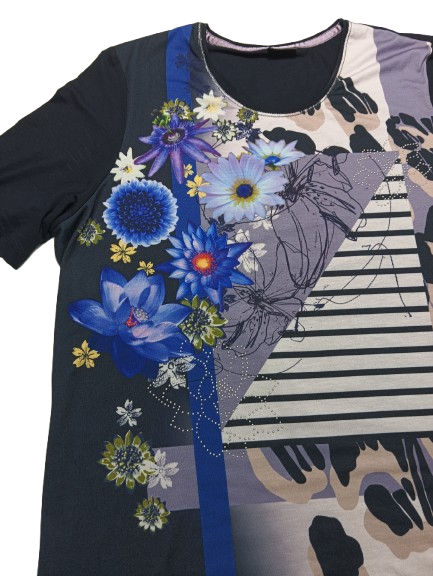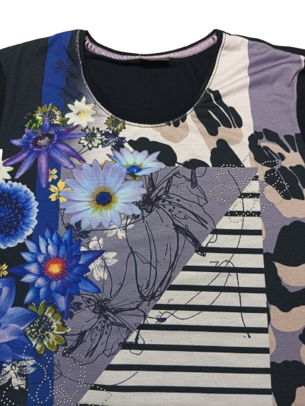 T-shirt donna Barbara Lebek in viscosa mezza manica girocollo con stampa anteriore floreale e tinta unita posteriore