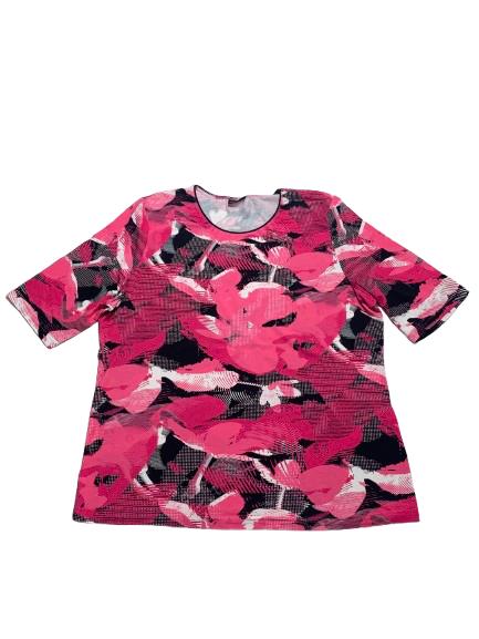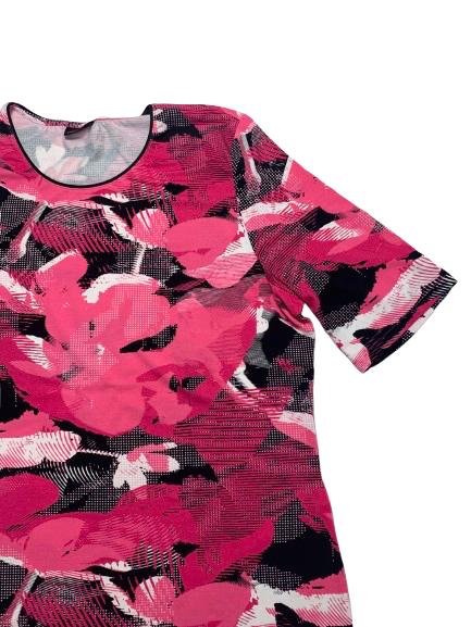 T-shirt donna Barbara Lebek in viscosa mezza manica girocollo con stampa astratta rosa e nero