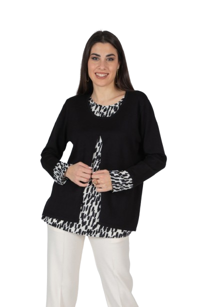Questo finto twin set è la scelta ideale per chi ama un look curato senza rinunciare alla praticità . Il sotto e i polsini in raso fantasia aggiungono un tocco raffinato e luminoso, mentre la composizione in viscosa, lana ed elastan regala comfort, morbidezza e una vestibilità impeccabile. Versatile e femminile, è perfetto per dare un twist chic ai tuoi outfit quotidiani. Aggiungilo subito al carrello e lasciati conquistare dai dettagli! 70% viscosa 20% lana 10% elastan
