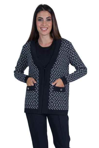 Scopri il twin set in lurex, perfetto per un look sofisticato e brillante. Il set è composto da una mezza manica basic e un cardigan jacquard. Il dettaglio lurex aggiunge quel tocco di luce ideale per ogni occasione. Non aspettare: aggiungi subito questo twin set elegante e versatile al tuo guardaroba e illumina ogni tuo outfit con stile!