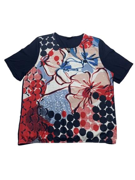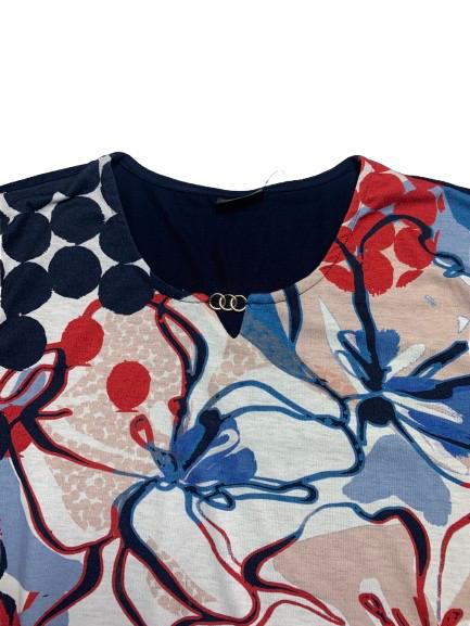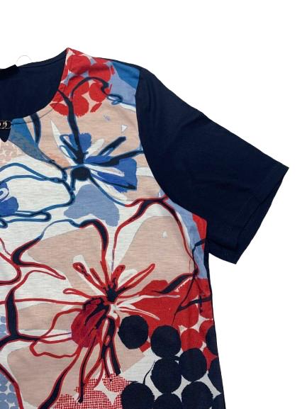 T-shirt donna Barbara Lebek in viscosa mezza manica girocollo con stampa anteriore ed elastico sul fondo retro tinta unita