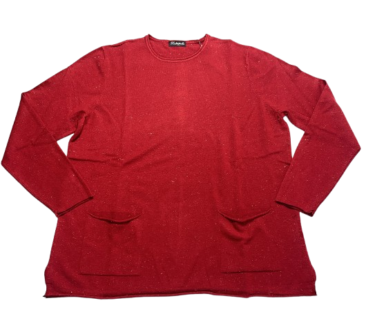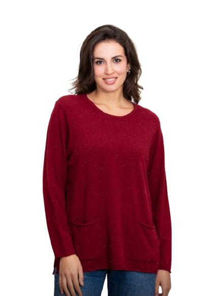 Maglia donna in maglina di viscosa scollo rotondo con tasche anteriori e tessuto in lurex