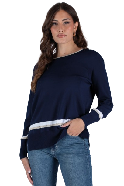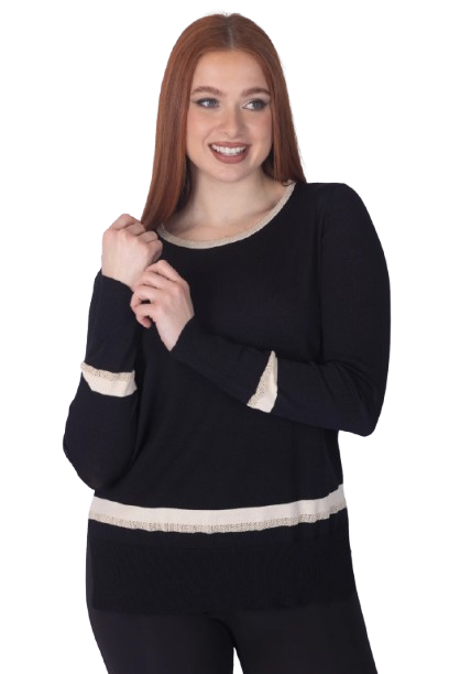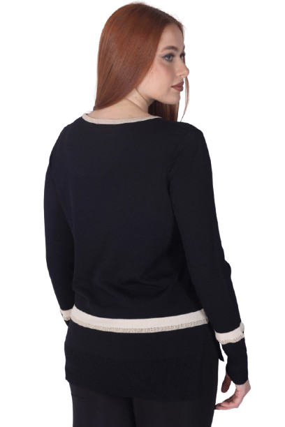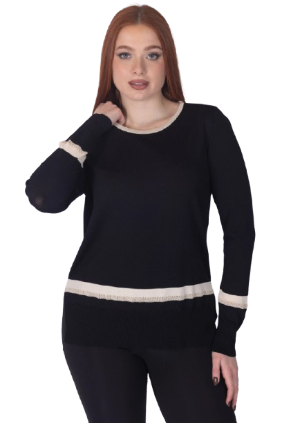 Mara Carol – Maglia Donna in Maglina di Viscosa con Inserti in Lurex, Manica Lunga