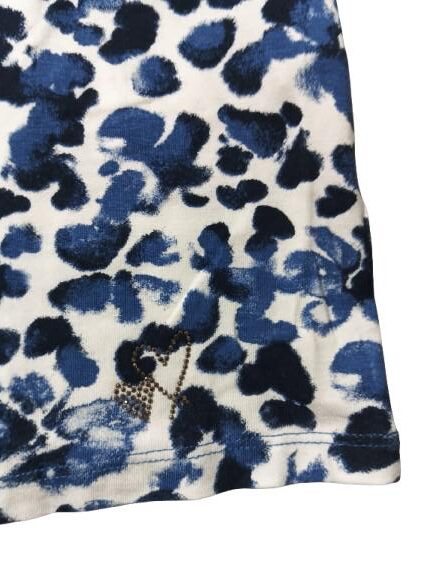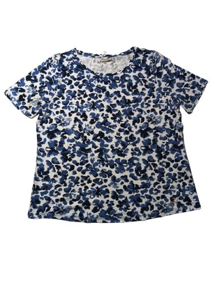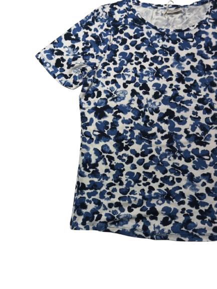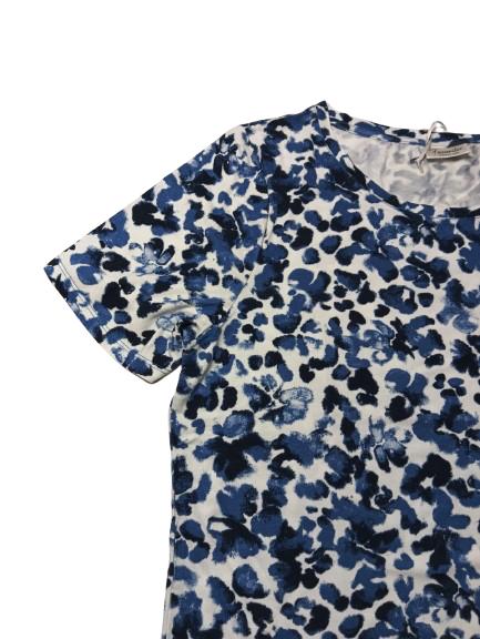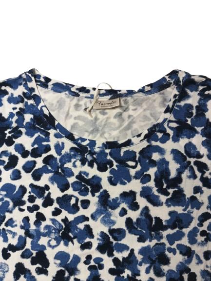 T-shirt donna Barbara Lebek in viscosa mezza manica con collo a barca fantasia animalier con il blu su fondo bianco