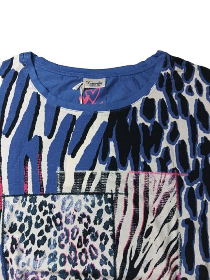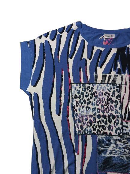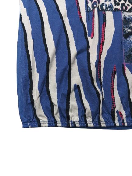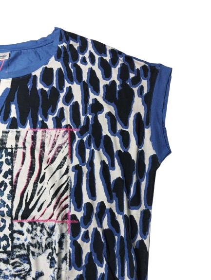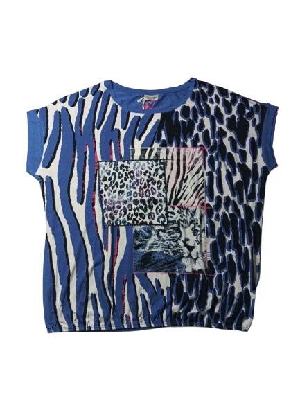 T-shirt donna Barbara Lebek in viscosa manica scesa con stampa animalier anteriore e coulisse sul fondo regolabile scollo a barca retro tinta unita