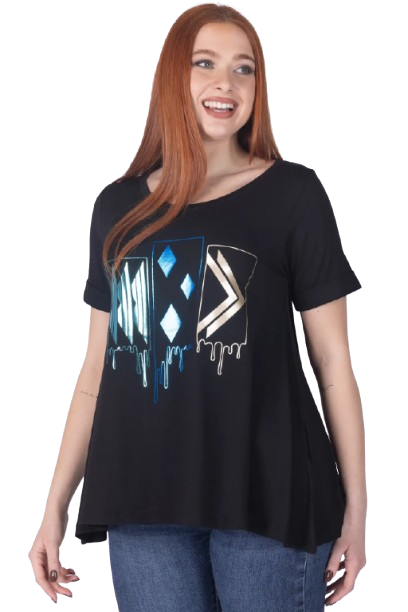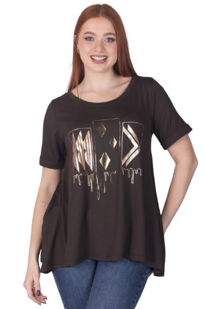 Il modello presenta un classico girocollo e una linea leggermente svasata, progettata per garantire una vestibilità comoda e fluida che valorizza la silhouette senza risultare aderente. Questo taglio rende la T-shirt particolarmente confortevole e adatta a diverse fisicità .