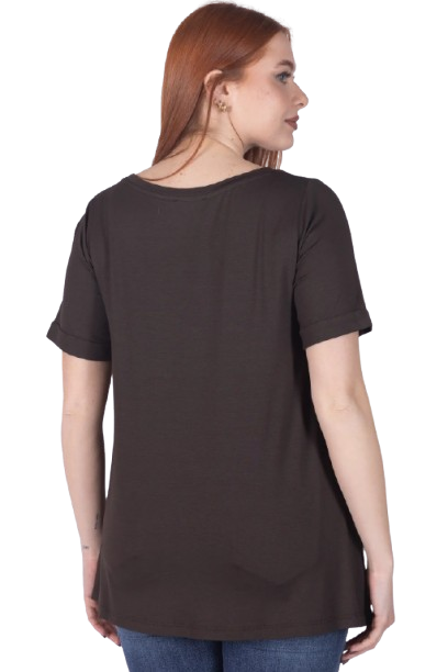 Le mezze maniche con risvoltino aggiungono un dettaglio moderno e curato, contribuendo a rendere la T-shirt ancora più versatile e facile da abbinare. Questo capo si combina perfettamente con jeans, pantaloni estivi, capri o gonne, permettendo di creare outfit casual chic adatti al tempo libero, alle uscite quotidiane o a occasioni informali.