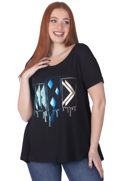 Il design è impreziosito da una stampa geometrica multicolor realizzata a caldo, che dona luminosità e carattere al capo. Il motivo grafico crea un effetto dinamico e contemporaneo, rendendo la maglia perfetta per chi ama uno stile casual ma ricercato.