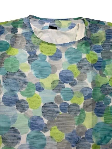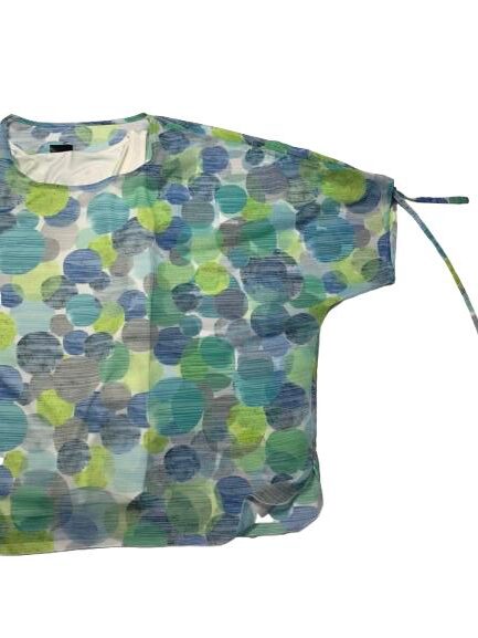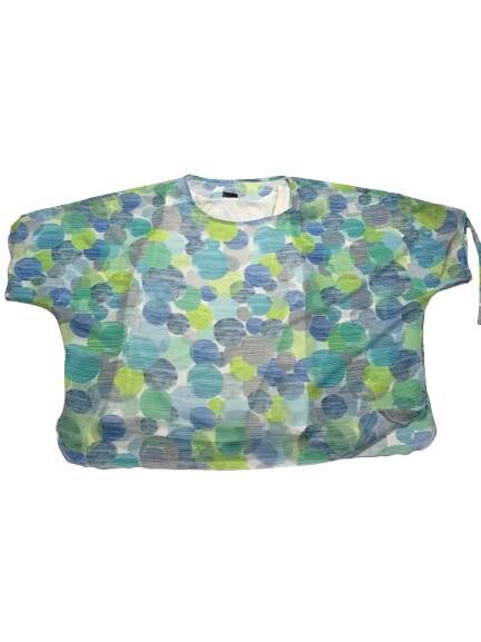 Blusa Donna Barbara Lebek in viscosa e poliestere modello cappa con coulisse sulle maniche per arricciare linea over canotta tinta unita in panna e stampa a bolle colorate sovrastante