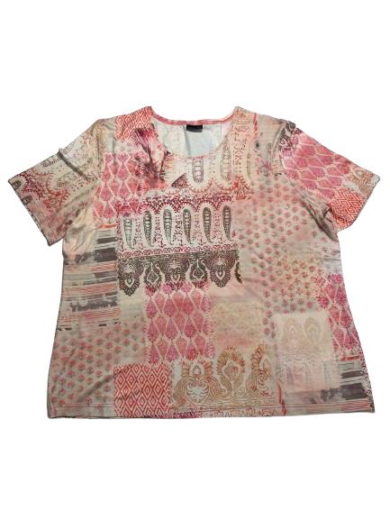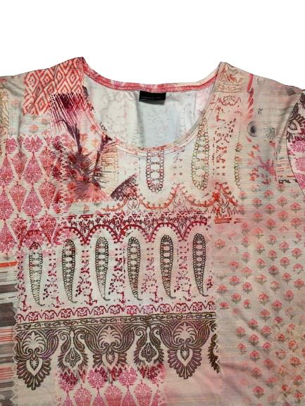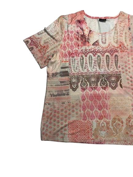T-shirt donna Barbara Lebek in viscosa mezza manica girocollo stampata pasley posteriore e anteriore sui toni del rosa
