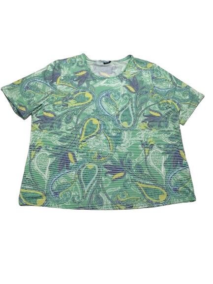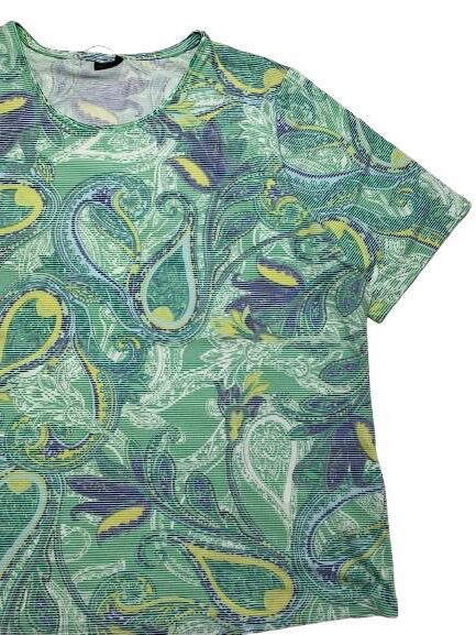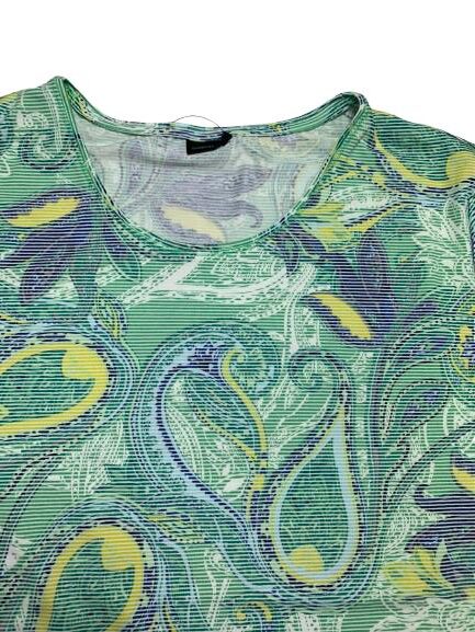 T-shirt donna Barbara Lebek in viscosa mezza manica girocollo fantasia millerighe pasley in verde