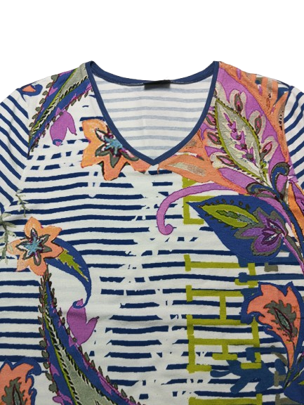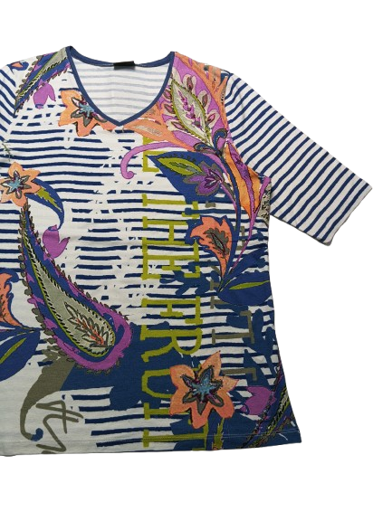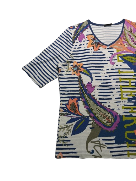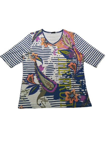 T-shirt donna Barbara Lebek in viscosa manica a gomito collo a V interamente stampata